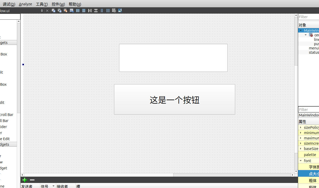 (2)在UI界面,设置分辨率为1920*1080,放置一个按钮(pushButton)和一个文本框(lineEdit)。