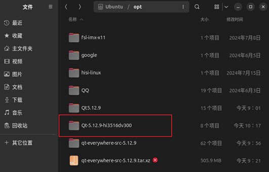 由于在autoConfig.sh文件中已经指定了安装路径,所以将自动安装到/opt/Qt-5.12.9-hi3516dv300目录下。